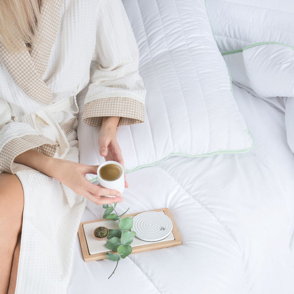 Viršutinis audinys yra švelnus ir raminantis, o užpildui naudojamas optimalią temperatūrą palaikantis 300g/m2 tuščiaviduris silikonizuotas poliesterio pluoštas, todėl ji puikiai praleidžia orą ir yra tinkama tiek šiltajam tiek šaltajam sezonui.